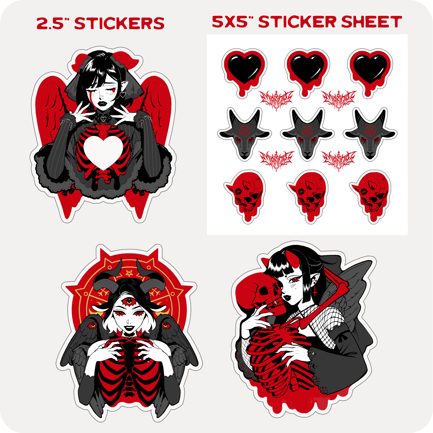 3 2.5" stickers, 1 5x5" Sticker Sheet